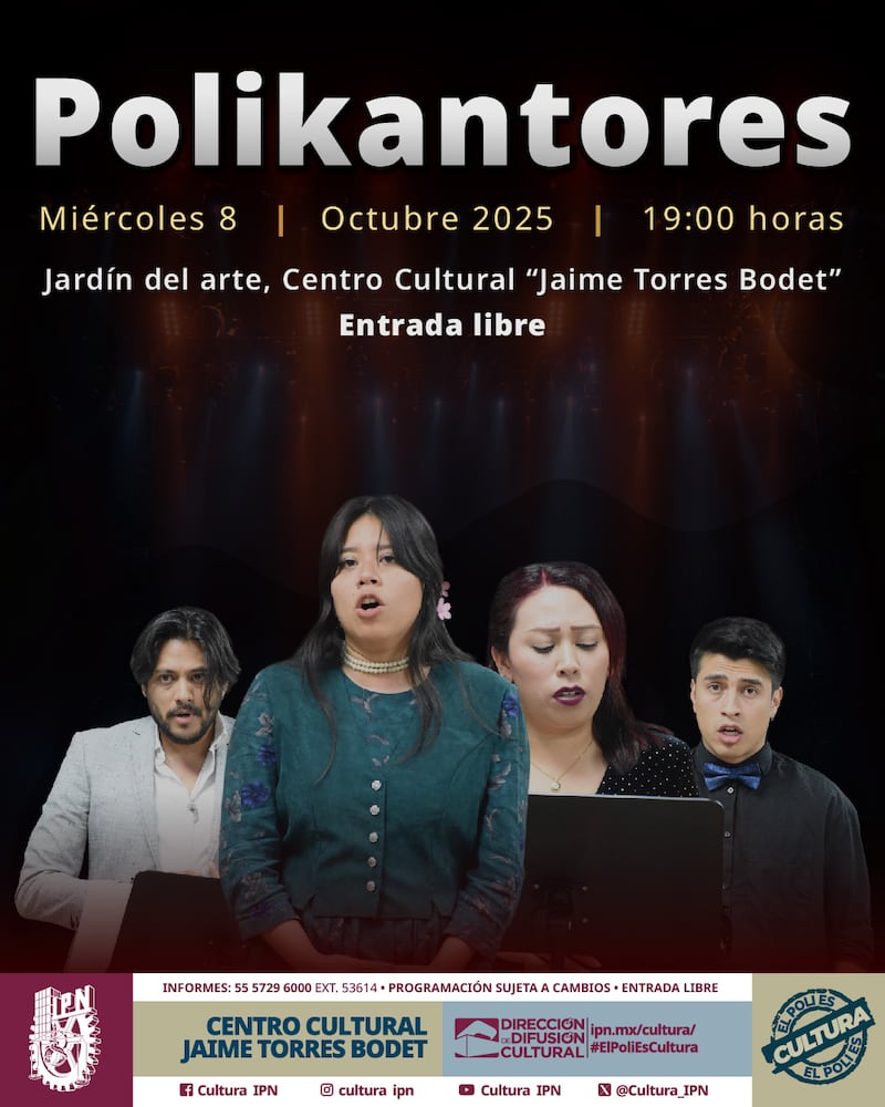 Como parte de las actividades de #TalleresArtísticosDDC Octubre 2025, la Secretaría de Servicios Educativos del Instituto Politécnico Nacional (IPN) invita al público a disfrutar de la presentación del taller de Canto y Vocalización “Polikantores”, un evento que promete una velada llena de armonía, técnica y pasión por la música.