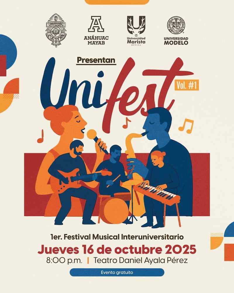 Este jueves 16 de octubre de 2025, el Teatro Daniel Ayala Pérez será el escenario de la primera edición del UniFest Vol. #1, un Festival Musical Interuniversitario que reunirá el talento de jóvenes artistas de distintas instituciones educativas. El evento comenzará a las 8:00 de la noche y la entrada será gratuita para todos los asistentes que se registren previamente en bit.ly/RegistroUniFestVol1.