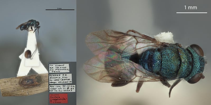 Duckeia vagabunda fue descrita en 1987 por la entomóloga Lynn Kimsey, de la Universidad de California en Davis, y su nombre científico hace honor a este peculiar viaje que hicieron estas dos avispas para llegar hasta las manos de su descubridora.
