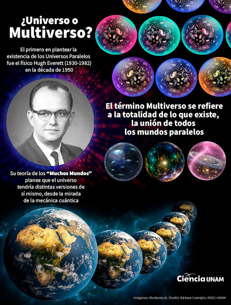 El término Multiverso se refiere a la totalidad de lo existente, es decir, a la unión de todos los mundos paralelos, incluido el nuestro. “Se han concebido distintas nociones que tienen en común la idea de que el universo es muchísimo más grande de lo que sospechamos, pero que difieren en el tipo de universos paralelos que plantean”, precisa el físico .