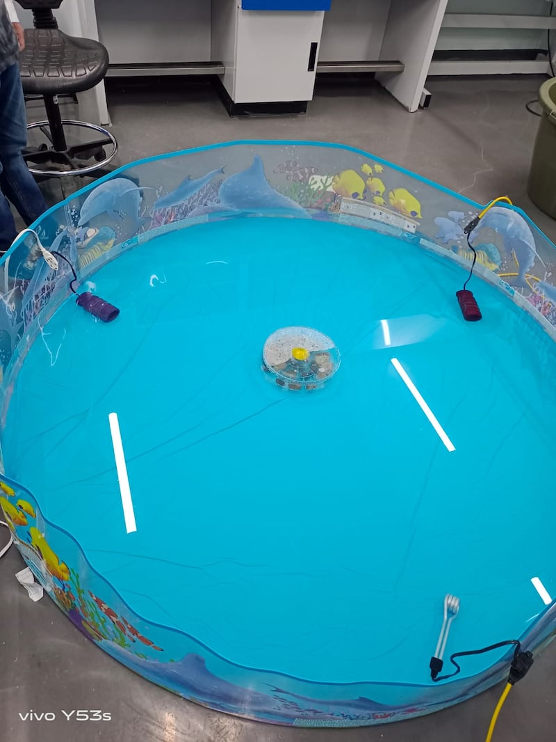 La prueba consistió en colocar a las crías en una piscina circular transparente llena de agua, en la que se ubicó una plataforma traslúcida que debía ser localizada por el animal para poder escapar.
