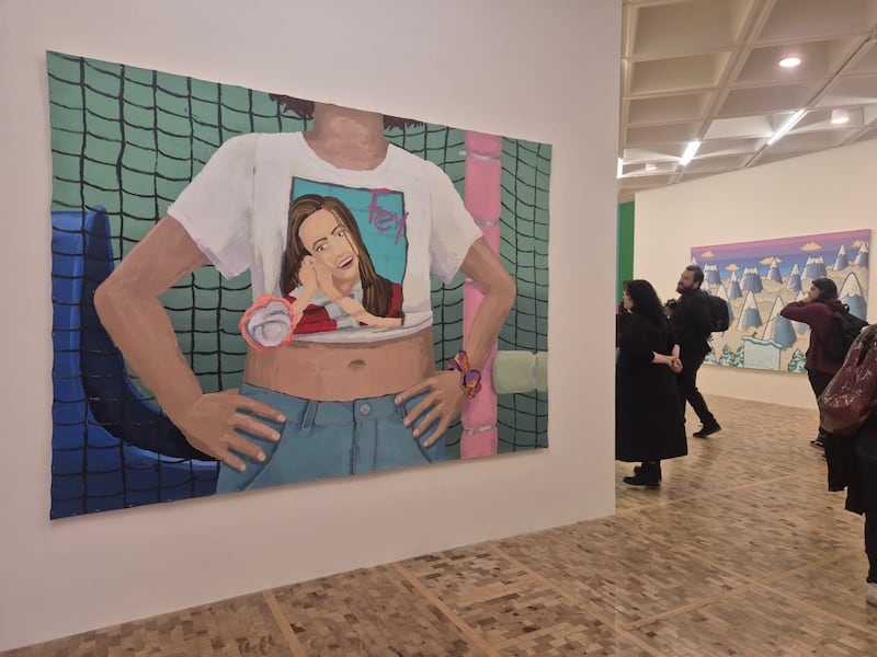 “Escuché una canción de Mónica Naranjo y había un video en particular que me gustó mucho. Yo lo veía y lo veía y lo veía, lo escuchaba, lo escuchaba… pasan los años y me voy dando cuenta que igual es una buena idea para una pintura: un retrato de Mónica Naranjo en ese video”, relata sobre una de las piezas que conforman el recorrido.