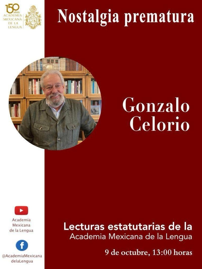 En el marco del ciclo Lecturas Estatutarias de la AML, Gonzalo Celorio, escritor y director de la institución, leerá fragmentos de sus memorias Ese montón de espejos rotos, próximas a publicarse. El adelanto se trata de “Nostalgia prematura”, texto en el que Celorio muestra su gusto por el bolero, género musical que lo ha acompañado toda su vida y al que define como “una inteligencia original que, sin ser traicionada, les abre las puertas a todas las pasiones, sobre todo a la pasión del amor”.