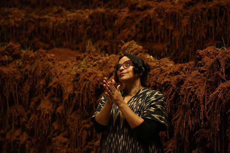 “El espacio vientre” es una reflexión sobre cómo el hombre se siente separado de la naturaleza por su soberbia y, al mismo tiempo, un espacio para el reencuentro con la tierra, la fertilidad y las mitologías ancestrales, dice la artista colombiana Delcy Morelos.