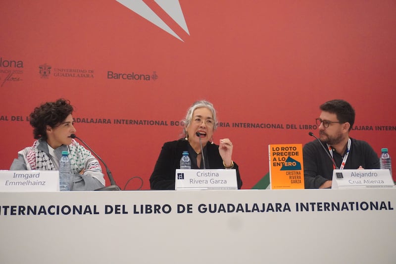 Posteriormente, la presentación se convirtió en una charla entre amistades que recordaron tiempos pasados y criticaron al genocidio en la Franja de Gaza. Asimismo, Rivera Garza evocó sus primeros años escribiendo a máquina. A partir de esa anécdota, reflexionó que se escribe con el cuerpo: los dedos rozan las teclas, los codos se apoyan en la mesa y se deposita el cuerpo entero sobre el texto, no sólo las ideas.