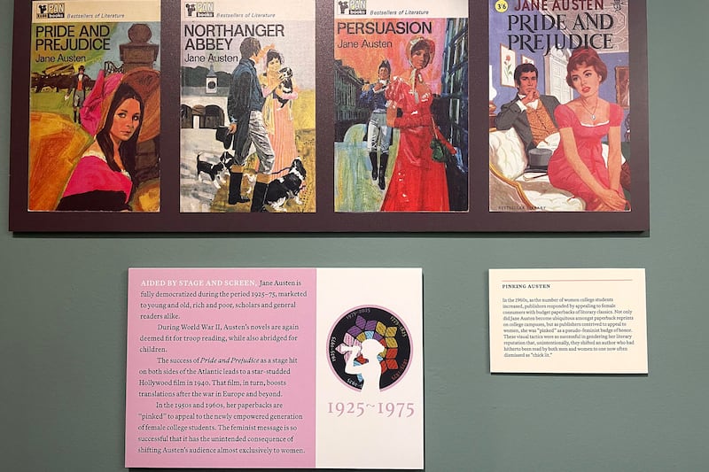 La muestra está dividida en cinco periodos de 50 años cada uno, en los que el público indaga en los entresijos de la literatura de Austen y en la percepción que tenían de ella sus apasionados.