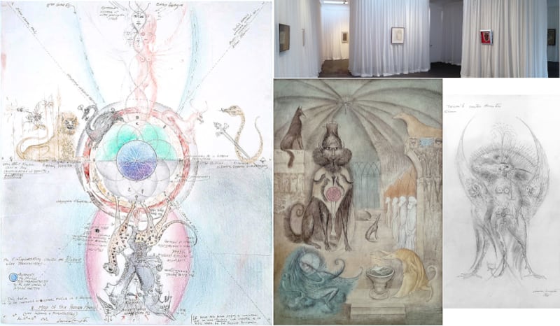 El complejo dibujo de Carrington no incluido en OMR, A Map of the Human Animal, 1962, exhibido por Pablo Goebel en la expo, Fábulas y Bestiarios. Los Cien Años de Leonora Carrington, 2017, da cuenta de la expansión mística de Leonora a través de múltiples conceptos: De William Blake (1757–1827), Star Fourfold Androgyne, estado divino de integración de opuestos; Sueño Inconsciente y la Cuarta Dimensión interna; la conciencia como redención, pero también como desintegración demoníaca y posesión por el pensamiento conceptual; el cuerpo y los 8 estados o “mundos” de la materia danzando en espiral en 8 direcciones, Atanor, el Huevo Cósmico y la matriz de la reconciliación, diversos animales y minerales, etc.
