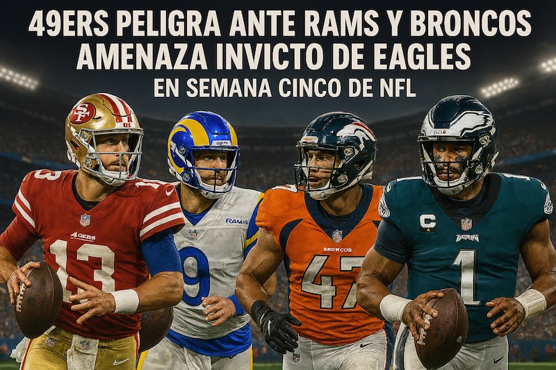 La semana cinco de la temporada 2025 de la NFL arranca este jueves 2 de octubre con un atractivo duelo divisional entre los San Francisco 49ers y Los Angeles Rams, en el SoFi Stadium, donde los californianos podrían perder el liderato del Oeste de la Conferencia Nacional (NFC).