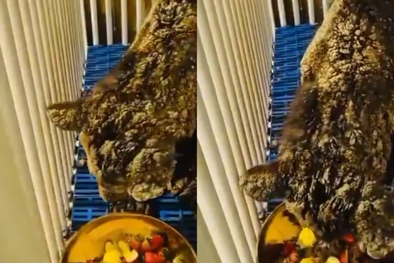 Durante la preparación del ejemplar para su traslado, se filtraron nuevamente imágenes de la osa que revelaron su estado físico debilitado, con casi la totalidad de la piel enferma, una pata trasera herida y el estado de desnutrición avanzado.