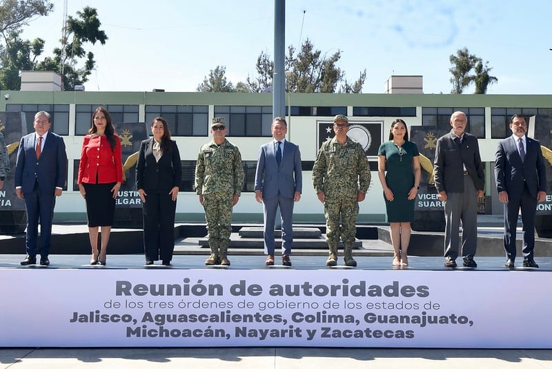 Jalisco fue sede de la quinta reunión de autoridades de los tres órdenes de gobierno, en la que participaron representantes estatales y federales de Aguascalientes, Colima, Guanajuato, Michoacán, Nayarit, Zacatecas y la entidad anfitriona, con el objetivo de fortalecer la colaboración en materia de seguridad y continuar con la reducción de los índices delictivos en la región. El encuentro se realizó en las instalaciones de la XV Zona Militar, en Zapopan, y contó con la presencia del gobernador Pablo Lemus Navarro, así como de mandos militares y representantes de la Guardia Nacional.