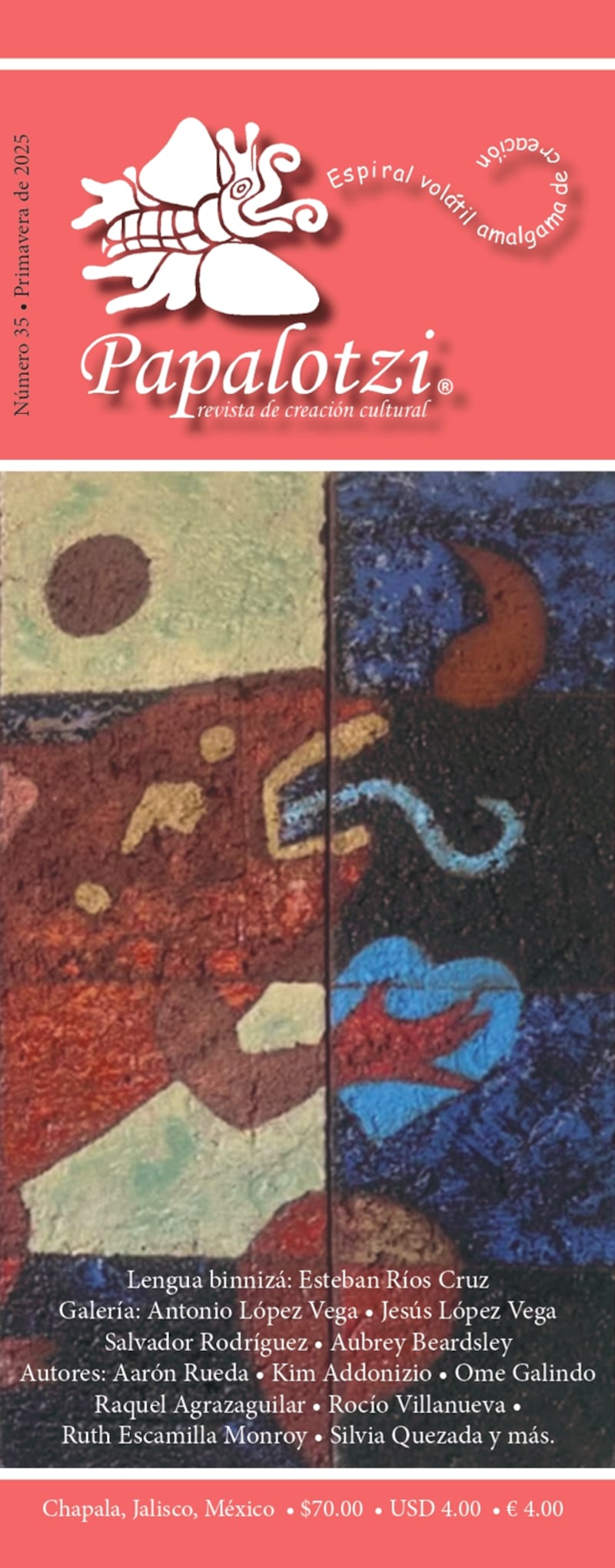 Una semana después, tocará el turno a “Papalotzi”, publicación fundada por Berónica Palacios, que ha difundido poesía en lenguas originarias y voces diversas de la literatura. Junto a ella participarán Dante Alejandro Velázquez, Subdirector de la revista, y la escritora María Fernanda Íñiguez.