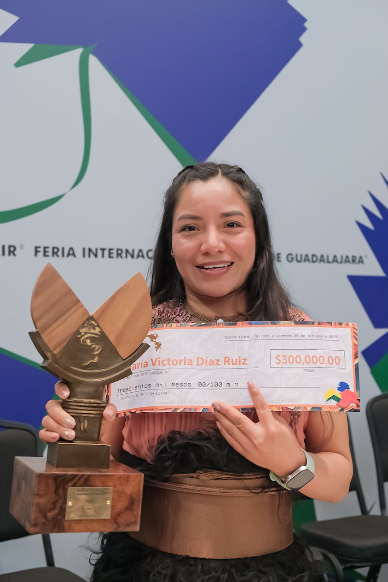 Durante la ceremonia, Gerardo Ascencio Rubio, Secretario de Cultura de Jalisco, entregó el cheque a la ganadora y subrayó que su propuesta literaria destaca por la contundencia con que reivindica la voz propia en un panorama de escrituras indígenas contemporáneas.