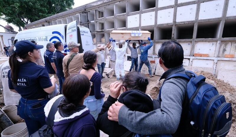 En las instalaciones del IJCF, cada una de las personas fallecidas e identificadas fue colocada en un ataúd. Posteriormente, se realizó el traslado hasta el cementerio.