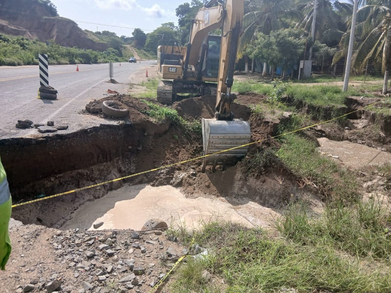 Trabajos se realizan en el kilómetro 51+800, en el municipio de Cihuatlán; corriente de agua provocó socavón; obras podrían prolongarse hasta el próximo viernes