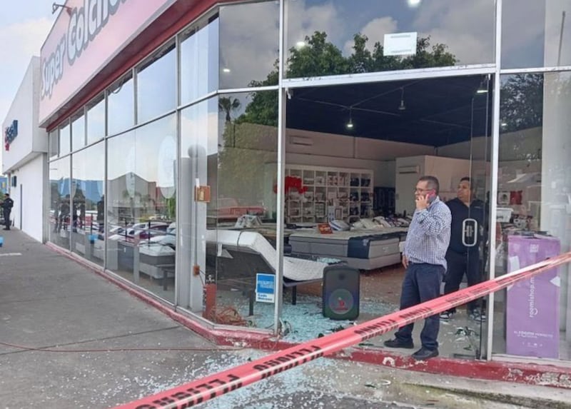 Los proyectiles dañaron un negocio de venta de colchones, tres vehículos particulares y la fachada del Banamex.