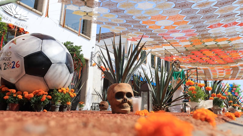 Inspirado en la pasión mexicana por el fútbol, el altar rinde homenaje a las Copas Mundiales celebradas en México en 1970 y 1986, integrando elementos prehispánicos y contemporáneos que simbolizan la identidad y el orgullo nacional.