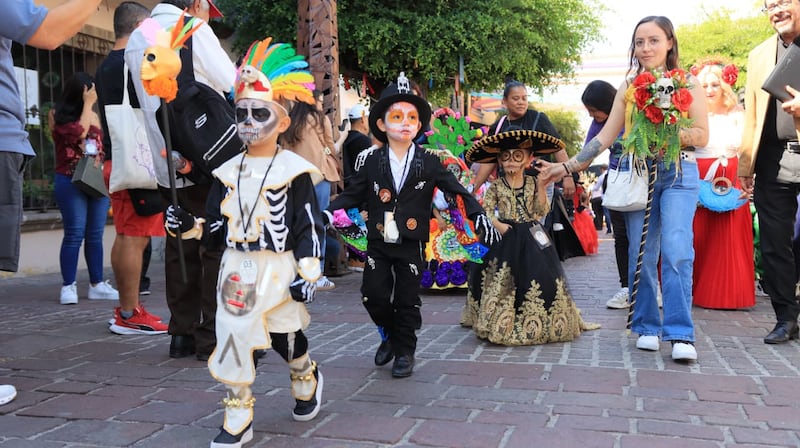 Las pequeñas calaveras, entre risas y pasos tímidos, avanzaban con los rostros pintados de blanco y negro, coronados por flores de papel y sombreros de ala ancha. A su paso, el aroma a cempasúchil y copal impregnaba el ambiente, mientras los espectadores aplaudían con orgullo. Más que un desfile, fue una estampa viva del México que honra la muerte celebrando la vida.