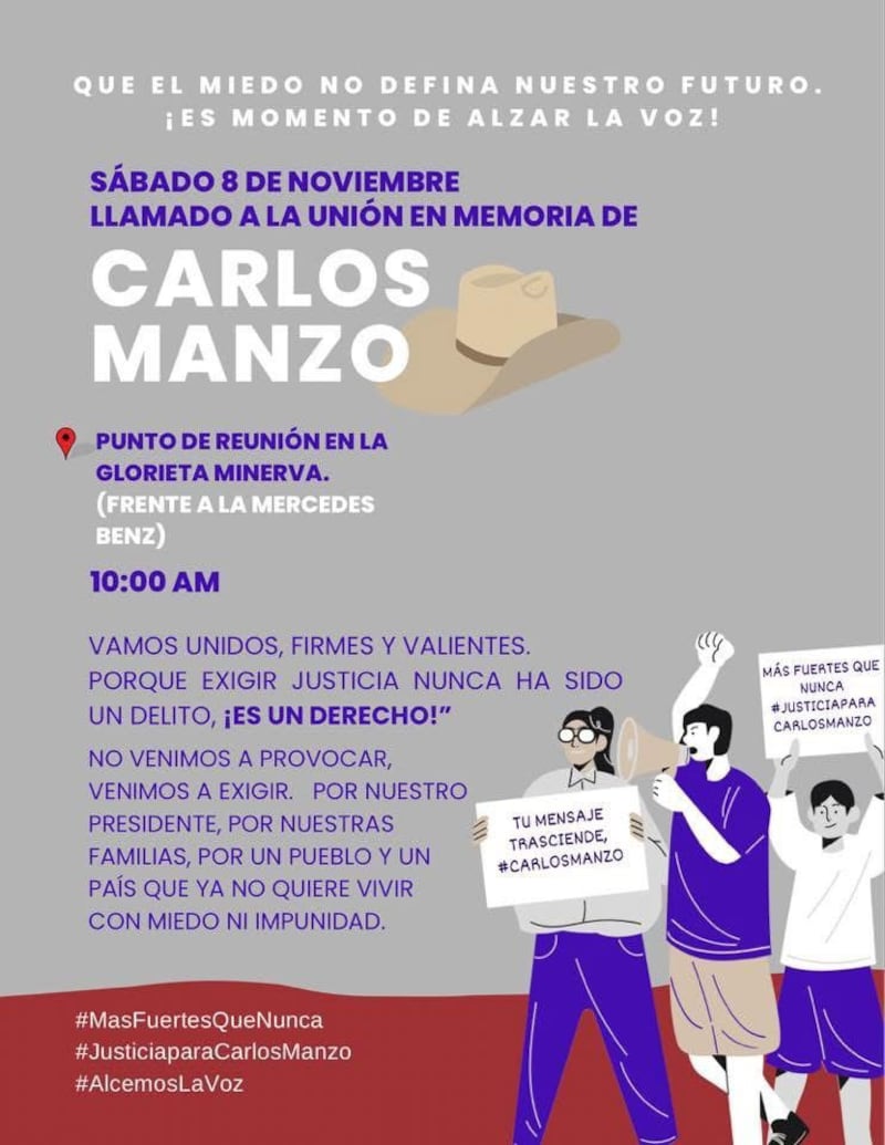 Tras el asesinato de Carlos Manzo registrado el pasado 1 de noviembre en Uruapan, Michoacán, ha comenzado a circular una convocatoria para una marcha en su memoria en Guadalajara. El llamado se ha difundido de forma anónima a través de redes sociales, por lo que hasta el momento se desconoce quién organiza la movilización.