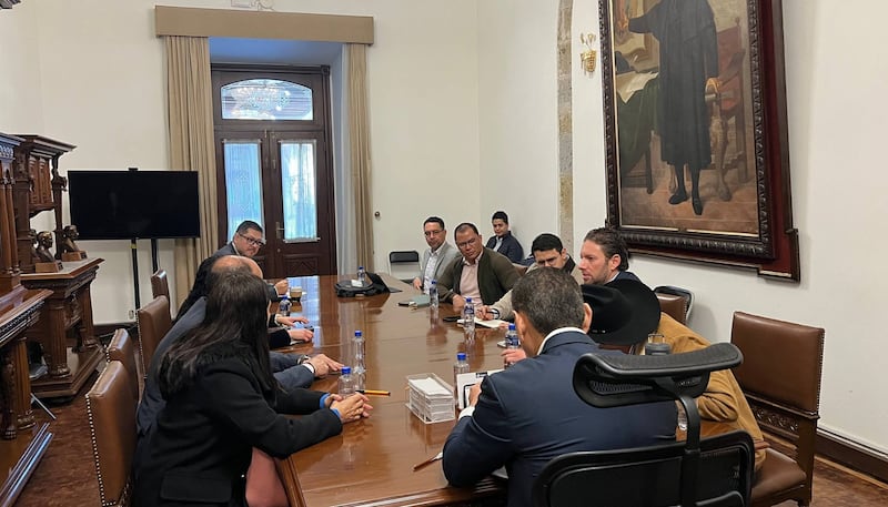 En la mesa de diálogo, celebrada en Palacio de Gobierno, en Guadalajara, participaron Diego Rivera Navarro, Alcalde de Tequila, y representantes de la empresa José Cuervo, junto con el mediador estatal.