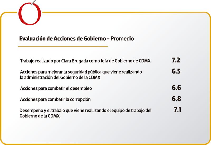 El trabajo realizado por Clara Brugada como jefa de Gobierno alcanzó una calificación de 7.2. El combate a la corrupción logra 6.8, en tanto las acciones contra el desempleo logran 6.6.