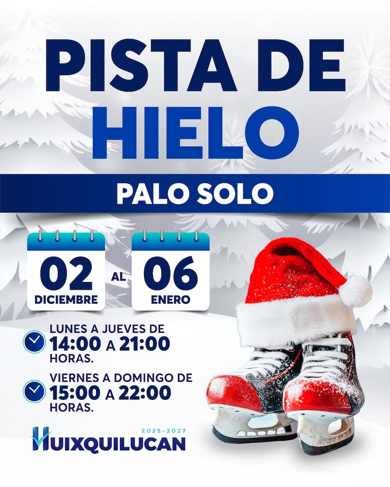 Con la llegada de la temporada decembrina, fue instalada una pista de hielo en la comunidad de Palo Solo, en el municipio de Huixquilucan, con el objetivo de brindar un espacio de recreación y sana convivencia para las familias. Esta atracción estará disponible del 2 de diciembre al 6 de enero, como parte de las actividades que se realizan durante estas fechas.