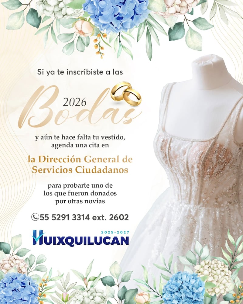 Además de la ceremonia civil gratuita, el Gobierno de Huixquilucan informó que aquellas mujeres que ya se hayan inscrito y aún no cuenten con vestido de novia podrán agendar una cita en la Dirección General de Servicios Ciudadanos para probarse alguno de los vestidos que han sido donados por otras novias.