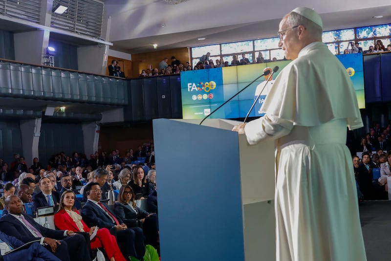 “Los escenarios de los conflictos actuales han hecho resurgir el uso de los alimentos como arma de guerra, contradiciendo todo el trabajo de sensibilización llevado adelante por la FAO durante estas ocho décadas”, lamentó León XIV.