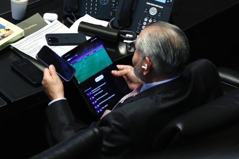 Mientras el secretario de Hacienda, Edgar Amador Zamora comparecía en el Pleno del Senado donde defendía la política económica del gobierno de la presidenta Claudia Sheinbaum de los cuestionamientos de la oposición, e l coordinador de Morena en el Senado, Adán Augusto López Hernández, fue captado observando el partido de Futbol de la Champions League donde se enfrentaban el Barcelona y el Paris Saint-Germain.