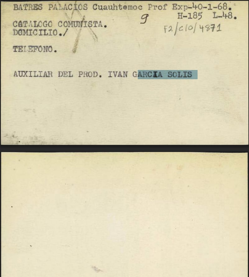 En 1968, en plena efervescencia estudiantil, que culminó con la Masacre de Tlatelolco el 2 de octubre, Cuauhtémoc Batres y García Solís, fueron vigilados por la DFS, quien les abrió expedientes por sus supuestas actividades subversivas.