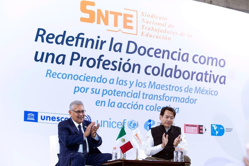 Durante la ceremonia, que este año lleva el lema “Redefinir la docencia como una profesión colaborativa“, flanqueado por su invitado Mario Delgado Carrillo, secretario de Educación Pública (SEP), añadió que “concebir la docencia como una profesión colaborativa, implica reconocer que ésta no puede ni debe ser asumida en soledad ni como responsabilidad individual”.