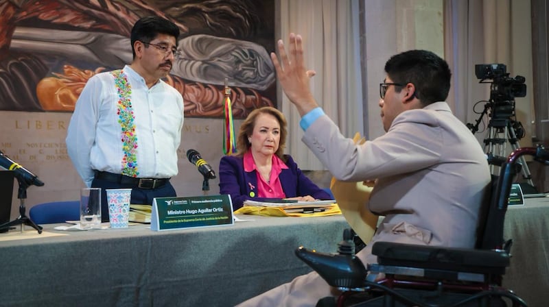 CDMX — Con Jesús Axel, diagnosticado desde su nacimiento con cuadriparesia espástica, el segundo día de las audiencias públicas rumbo a un nuevo criterio que invalide reglas generales del derecho a la consulta, se expuso que el Estado mexicano debe velar por todos aquellos “vasos” que permitan la incidencia del 0.005 de la juventud con discapacidad en México en la política pública, el único medio hasta hoy a su alcance.