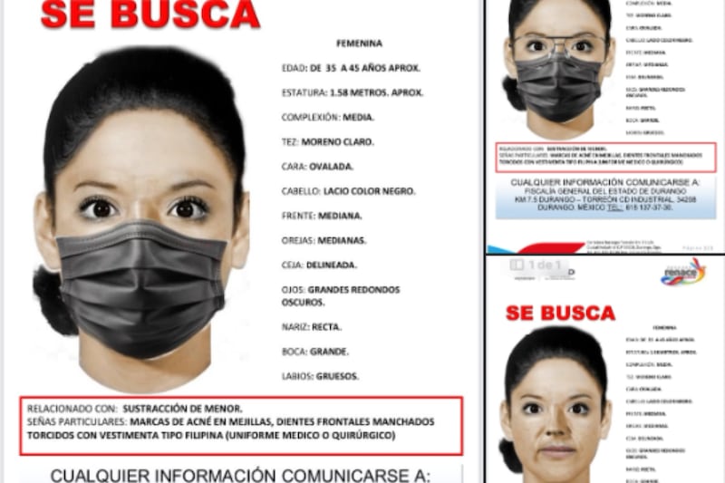 Después de que la Fiscalía General del Estado de Durango emitiera una Alerta Amber con la ficha de búsqueda de Judith Alejandra Rivas, quien fue robada la tarde del 23 de octubre, la fiscalía también publicó un retrato hablado de la mujer que sustrajo a la menor.