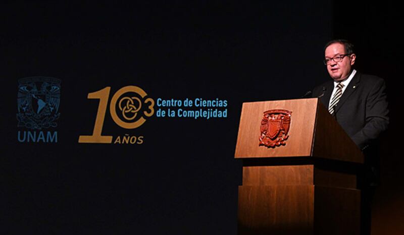 Al inaugurar el Simposio Cuarta Semana de la Complejidad, en conmemoración de los 10 años del C3, Lomelí Vanegas recordó que la Universidad Nacional es una institución de educación superior pública y autónoma capaz de renovarse y pensar nuevas formas de generar saberes de vanguardia, cualidades que han merecido al C3 ser reconocido como un referente nacional, regional e internacional, donde el trabajo colectivo e interdisciplinario ha sabido comprender y afrontar las problemáticas de nuestro tiempo. A decir del rector, el Centro ha impulsado una amplia gama de temáticas, desde el modelado de epidemias y su relación con la salud pública al estudio de los ecosistemas y los procesos que regulan su equilibrio, sapiencia que incluye igualmente investigaciones en aprendizaje orientadas al análisis de los Objetivos de Desarrollo Sostenible, estudios sobre neurociencia de la cognición y las capacidades de cómputo, así como proyectos sobre sustentabilidad y conflictos socioambientales; “este Centro ha sabido preguntarse por qué las estrategias globales para enfrentar el cambio climático no han dado los resultados deseados; por qué el conocimiento científico, a pesar de su expansión, no siempre se traduce en bienestar social; o qué tipo de instituciones de educación superior necesitamos para superar la crisis civilizatoria en ciernes”, agregó.