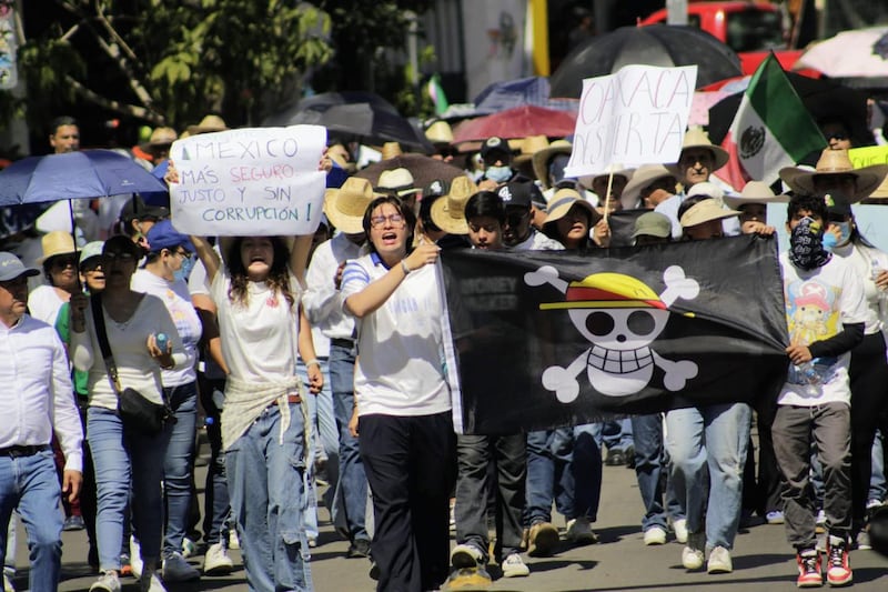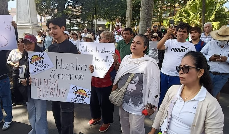 Entre pancartas, banderas de One Piece y gritos, Jóvenes y familias exigen un alto a la violencia en la entidad.
