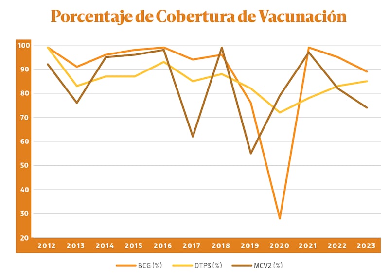 Sin duda, la vacunación representa la piedra angular del paradigma de la medicina preventiva. Durante décadas el Programa de Vacunación Universal de México fue ejemplo de éxito en cuanto a cobertura y reducción en la incidencia de enfermedades infectocontagiosas. Al inicio del milenio se llegaron a reportar tasas de cobertura con esquema completo de 95% para infantes de menos de 1 año y 98% para menos de 4 años. Actualmente, las coberturas de vacunación se han alejado de los niveles óptimos. Por ejemplo, en la siguiente gráfica se reportan los datos de la Organización Mundial de la Salud y el Fondo de las Naciones Unidas para la Infancia.