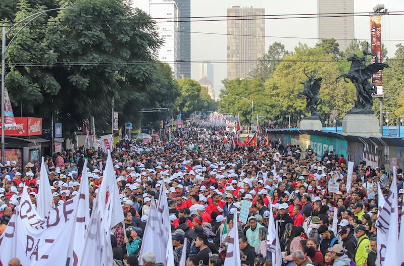 Los contingentes avanzaban lentamente. Había grupos provenientes de Puebla, de Nezahualcóyotl, de Ecatepec, de Chimalhuacán, de Gustavo A. Madero. También se observaban representantes de pueblos originarios, algunos con trajes tradicionales, otros con carteles hechos a mano. Cada grupo llevaba su propio ritmo, pero todos caminaban hacia el mismo destino: el Zócalo.