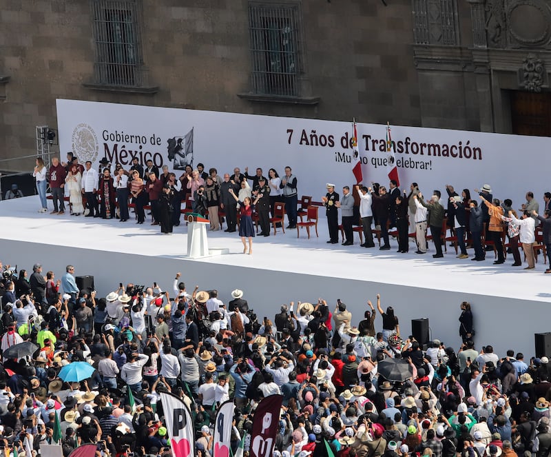 Cobijada por una marea humana procedente de varios estados del país y que la ovacionó en la plancha del Zócalo de la Ciudad de México, la mandataria, quien tenía pocas horas de haber regresado de Washington, donde tras el sorteo de la Copa del Mundo del 2026 pudo reunirse con el presidente de Estados Unidos, Donald Trump, destacó que hay una muy buena relación con Estados Unidos, lo que ha permitido llegar a entendimientos en materia de seguridad entre ambos países y donde el T-MEC son prioridad para México, EU y Canadá y todo acuerdo se realiza con respeto a la soberanía.