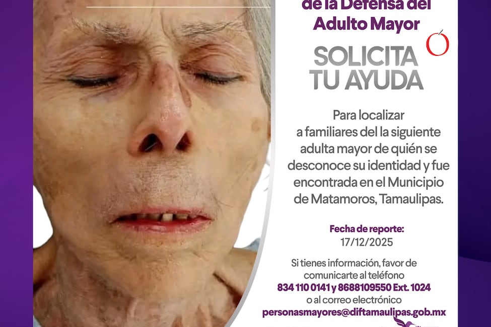 La abuelita que habría sido encontrada a un lado de una carretera en Matamoros ha sido identificada... Ver más