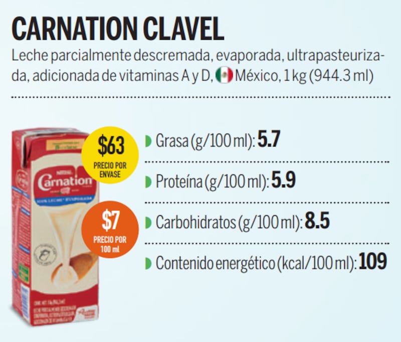 Para sorpresa de algunos, la leche con más proteína es la leche Carnation Clavel, con 5.9g por cada 100 ml. Destacando entre 85 productos ultra pasteurizados, analizados en este estudio.
